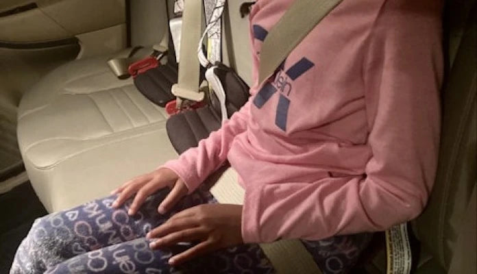 A regular booster seat lifts the child to be in the position of an adult. Mifold does the exact opposite, instead of lifting the child up it holds the seatbelt down. It does this at three points: there are belt guides on either side of the child's hips to hold the lap belt correctly against the bones and off the soft stomach. These belt guides are adjustable to three sizes to make sure that the belt is always held snugly in place. There is a third clip on a strap that pulls the seatbelt chest strap down correctly onto the bones of the shoulder; away from the face and neck. So like a regular booster, Mifold holds the seat belt in exactly the correct position on the bones of the hips and the bones of the shoulder, without needing a big, bulky seat to lift the child. In a collision, the child is protected in the same way. Mifold simply works to hold the adult seatbelt correctly on a child.